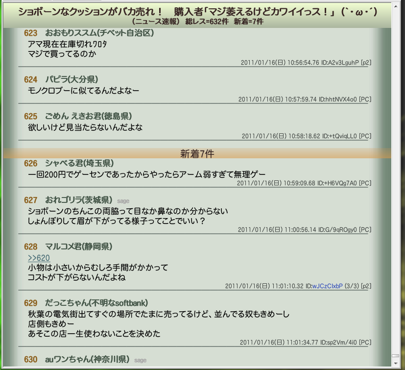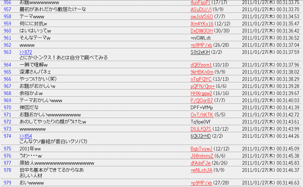![]() | 更新日 2011/01/27 DL 対応状況 レス表示スタイル:○ Tweet表示スタイル:× 備考・コメント 実況用にどうぞ |