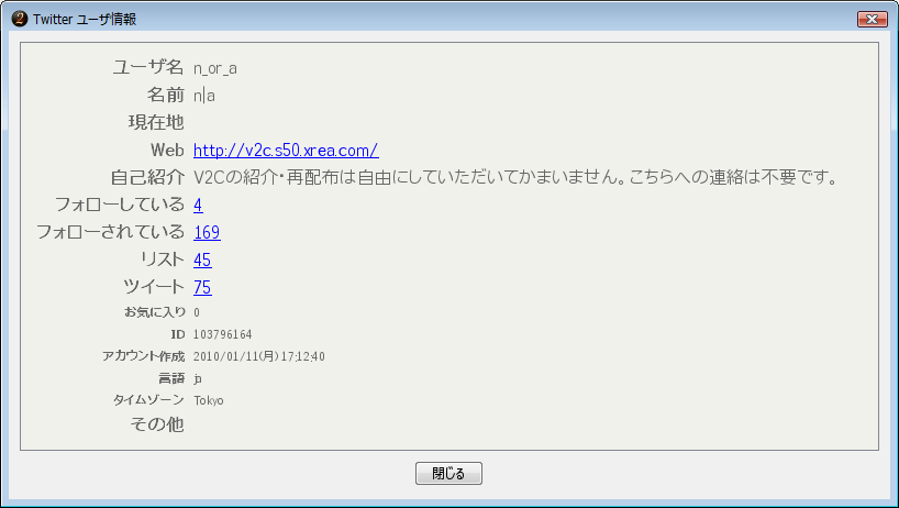 V2Cの起動時、以下のいずれにも該当しないTwitter検索用仮想スレッド、及びUserTimeLine用仮想スレッドは自動的に削除されます。