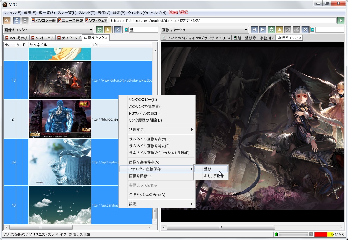 画像ビューワに送りたくないけど選んで保存したい、という場合はキャッシュ一覧からもできます。