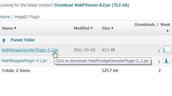 sourceforgeのjavavp8decoderから WebPImageDecoderPlugin-0_2.jar をダウンロードします。