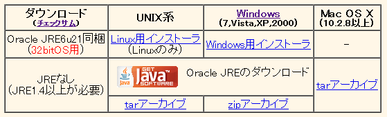 - こちらから*.tar.gzをダウンロードする。(JRE6はこちら)